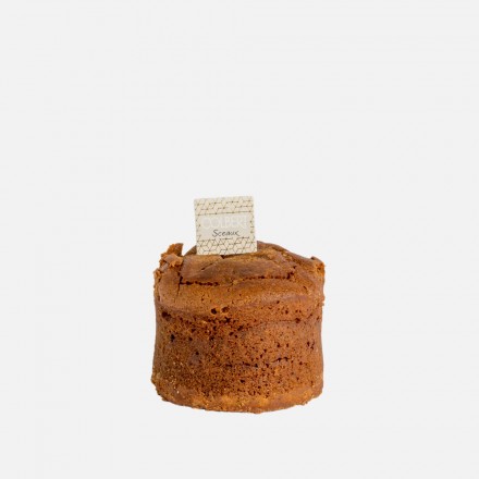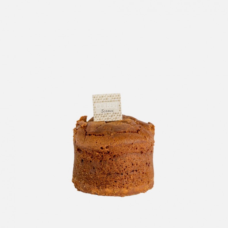Moelleux chocolat, cœur coulant ganache chocolat Komélé 70 % de cacao. À réchauffer 20 secondes au micro-ondes.